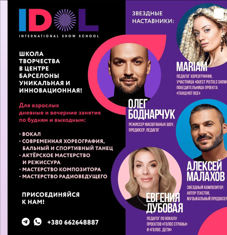 Вас ждут звездные преподаватели, работающие с артистами мирового шоу-бизнеса! Они поделятся уникальным опытом и покажут кратчайший путь к звездному Олимпу!